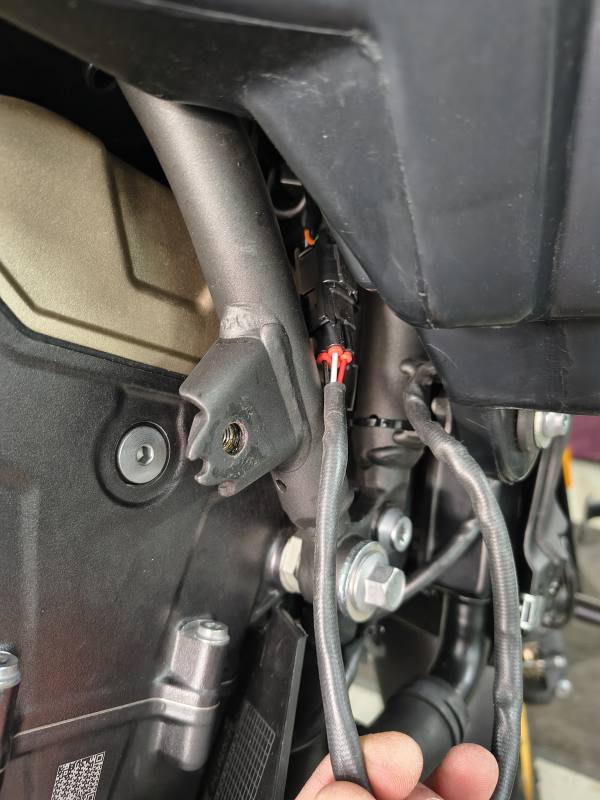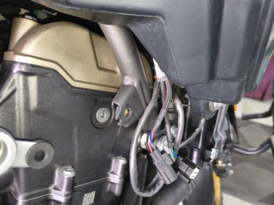 - Route the harness between frame and gas tank